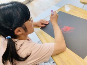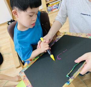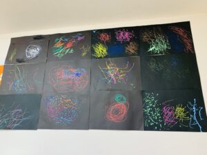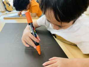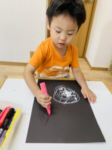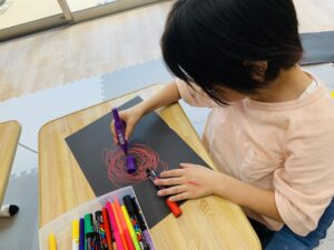 カラフルなペンでたくさんの丸や線を描いていきます☺️