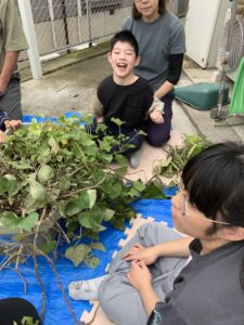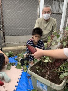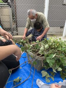 この芋は夏前にみんなで植えたものです。