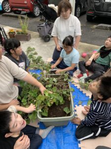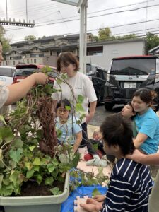 この日はちょっと触るのが嫌な子や、逆にこれでもかと堪能する子など様々。でもできたお芋にはみんなびっくり驚いた顔をしていました。