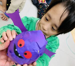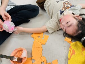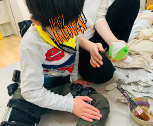 糊のベタベタな感触を感じながらも、みんな集中して貼ってくれました🎃