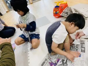 みんな大好きな新聞紙遊びなので、ワイワイ賑やかな雰囲気で楽しみました😊