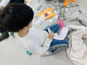 まずは新聞紙や画用紙を千切っていきます📰