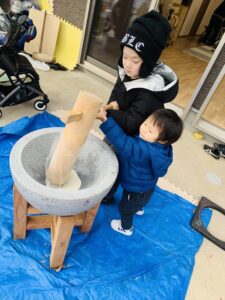 2月に入ってしまいましたが、今回は前回に引き続きお餅つきの様子をお伝えします!
